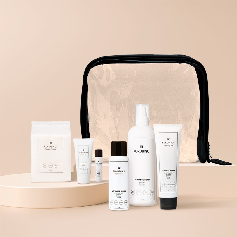 旅行時にFUKUBISUIボトルを入れられる特大ビニールポーチもついています。