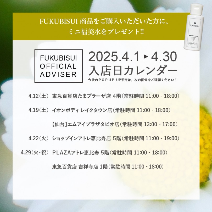 4月もお肌悩みに合わせたアイテムや使い方のご案内をオフィシャルアドバイザーがいたします。