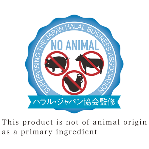 1次原料に動物由来が不使用であることをハラル・ジャパン協会が原材料の規格書等を確認して証明している認証。ハラル(ハラール)、ベジタリアン(ヴィーガン)等を証明するものではありません。